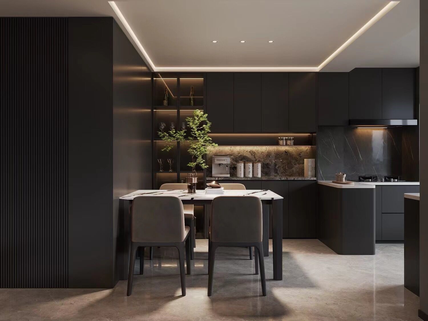 廚房臺(tái)面和餐桌桌面選用白色,減少沉悶感,提升簡(jiǎn)約、高雅韻味。