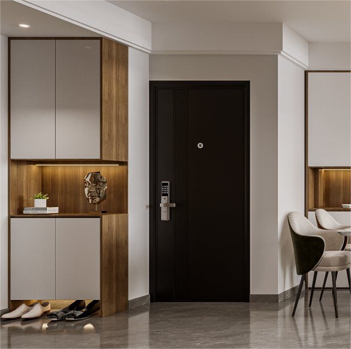 玄關(guān)同樣選擇淺色色塊營造環(huán)境的簡約感,配色簡單卻不會讓人產(chǎn)生審美疲勞。柜門線條明快流暢,簡潔利落,都市感十足。