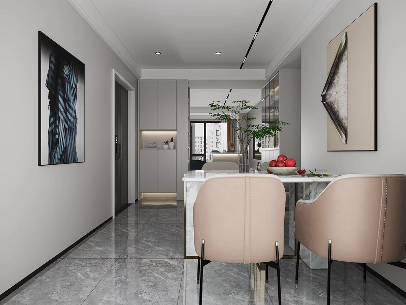 餐廳選擇以淺色系作為主色,讓空間放大,視覺明亮,打造無(wú)壓迫感的用餐空間。同時(shí)用深色點(diǎn)綴,加強(qiáng)對(duì)比,鮮明層次。